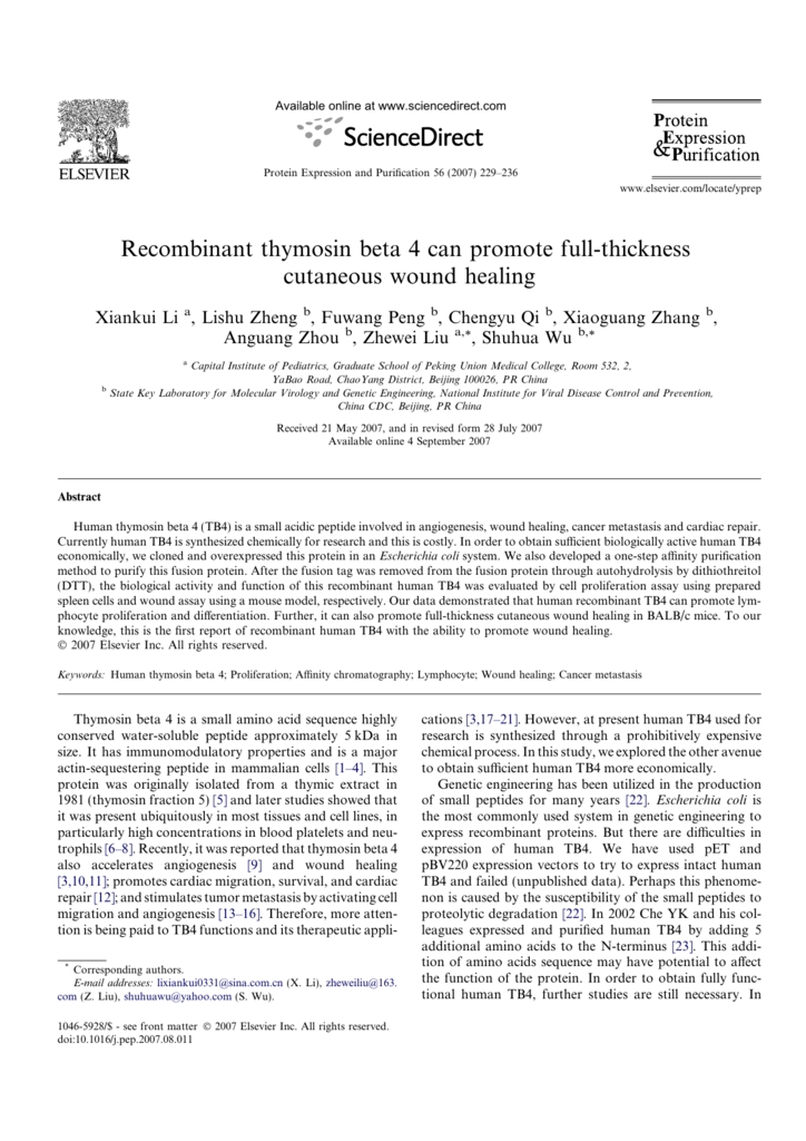 Thymosin Beta 4 Wirkung - Thymosin Beta 4 - A Healing Peptide | Regenerative Medicine Center